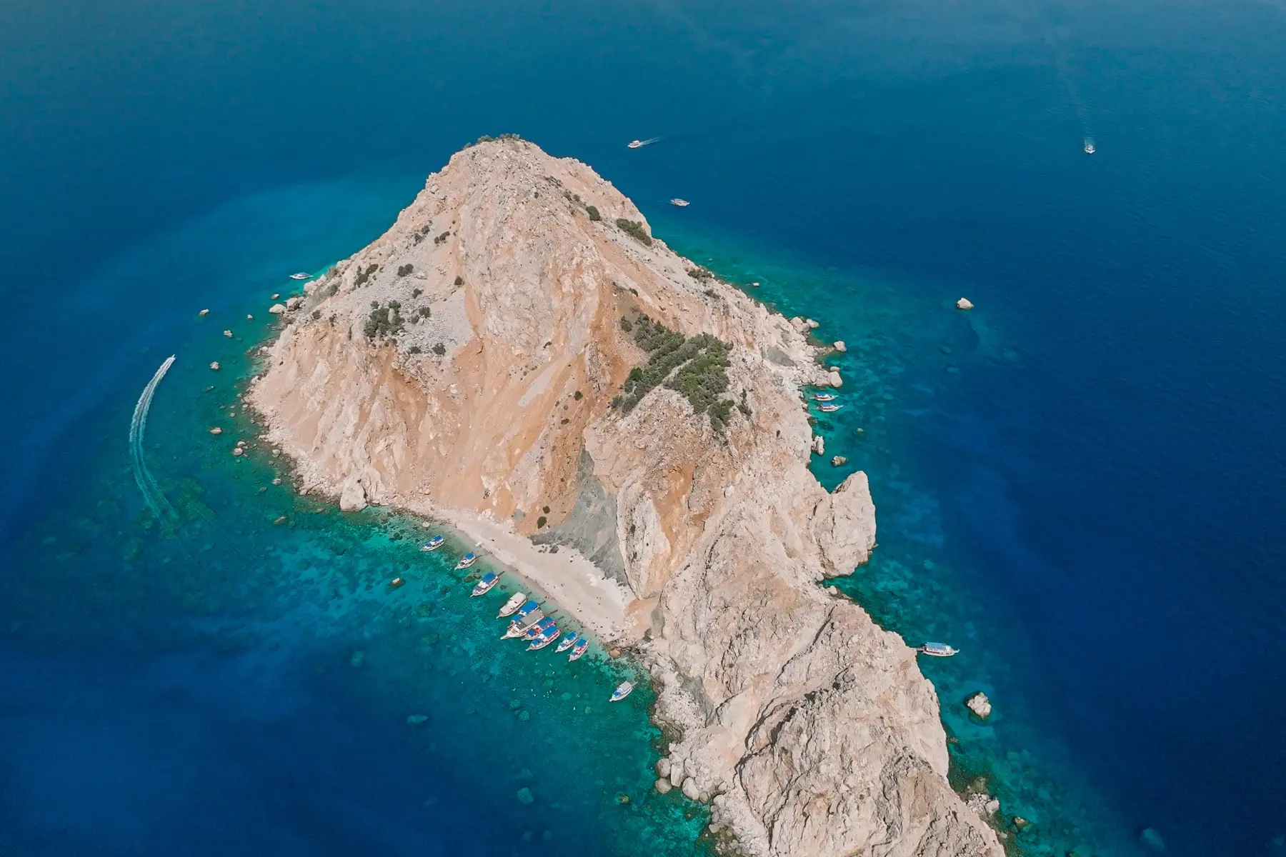 Known as the Maldives of the Mediterranean, Suluada fascinates visitors with its turquoise waters, white sandy beaches, and untouched natural beauty. On our daily boat tours from Antalya, you can enjoy swimming breaks, explore hidden spots, and relax on deck while discovering this unique paradise. An unforgettable day in crystal-clear waters awaits you.